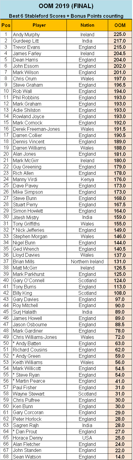 Also well done to Order of Merit Winner – Andy Murphy