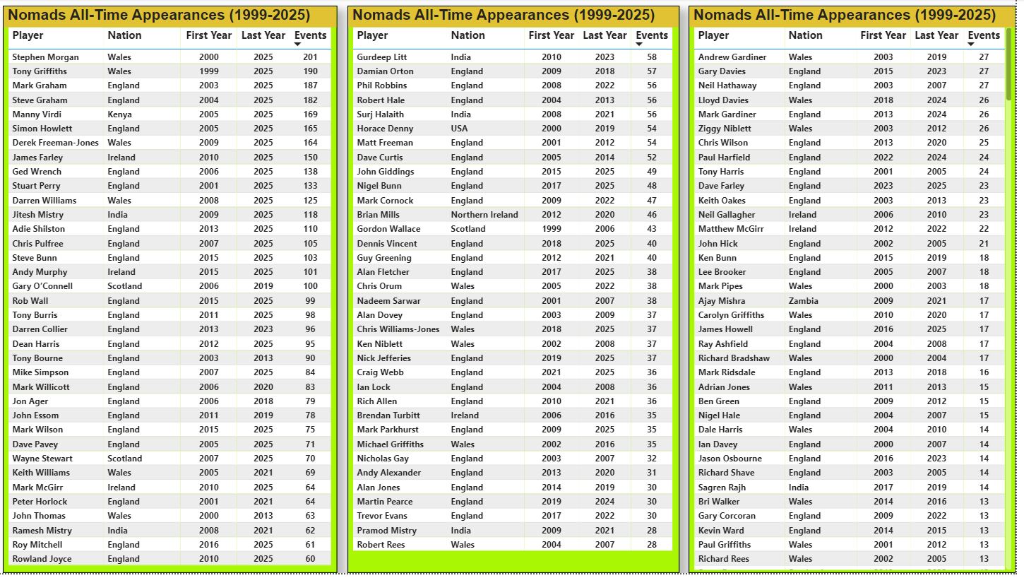 Top Appearances (at end 2025)